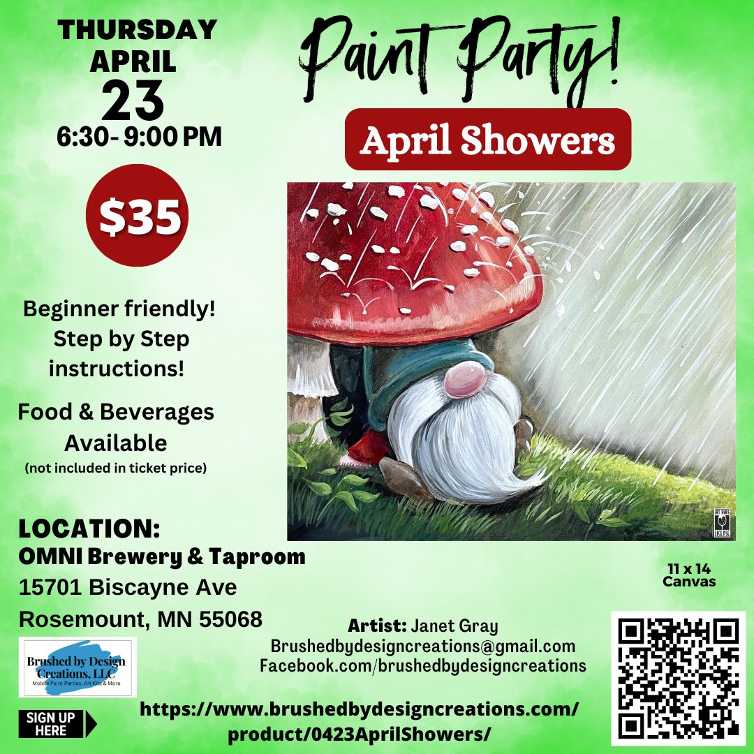 Ticket purchases are nonrefundable. If you are unable to attend and notify me a minimum of 48 hours before the paint party, I will place you on my credit list. Please note that your credit must be used within 90 days or it is forfeited. You may also opt to have your canvas and paint sent home with your friend on the day of the event you signed up for. Brushes are not included. If the paint party has to be changed due to a force of nature, we will reschedule or issue credit towards another paint party to be used within 90 days.